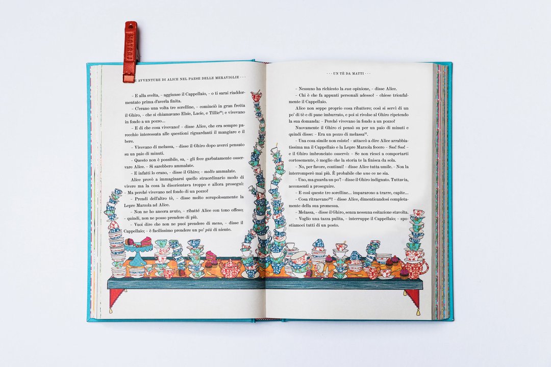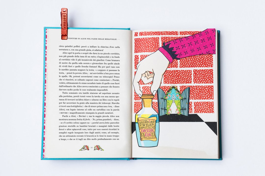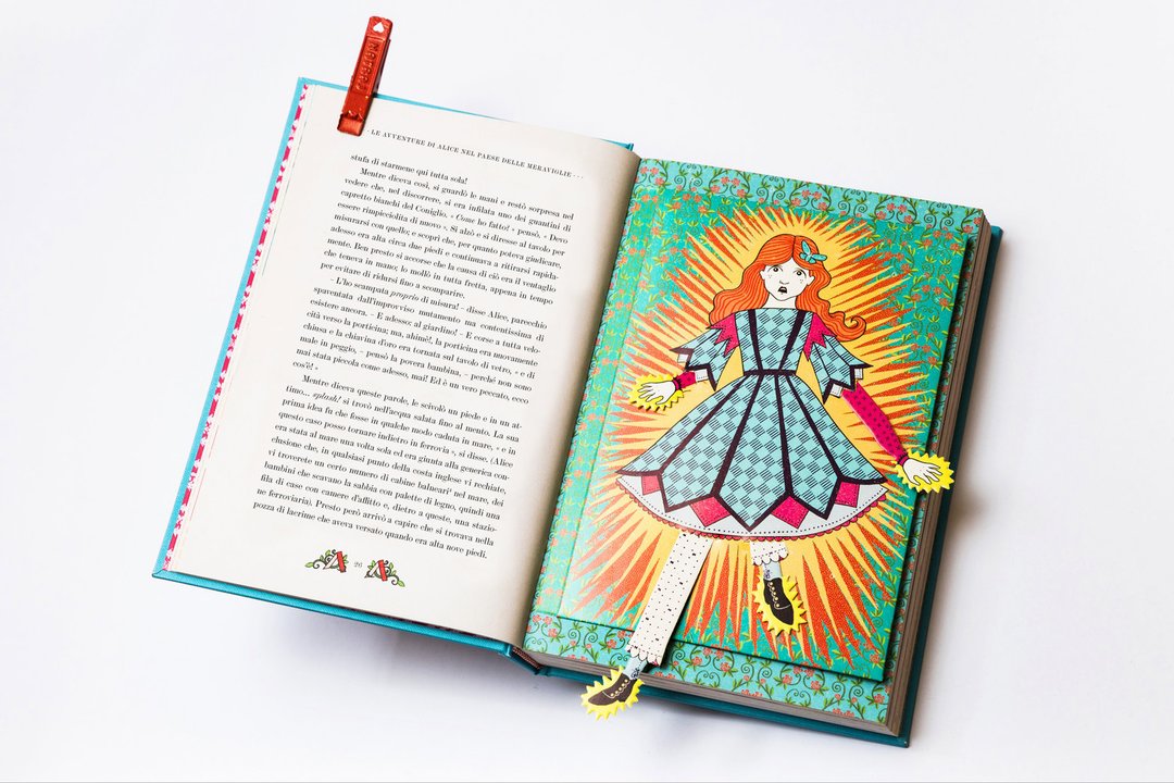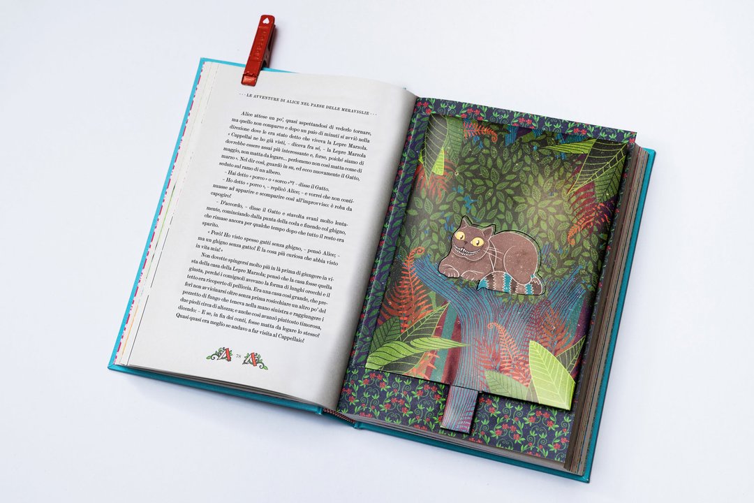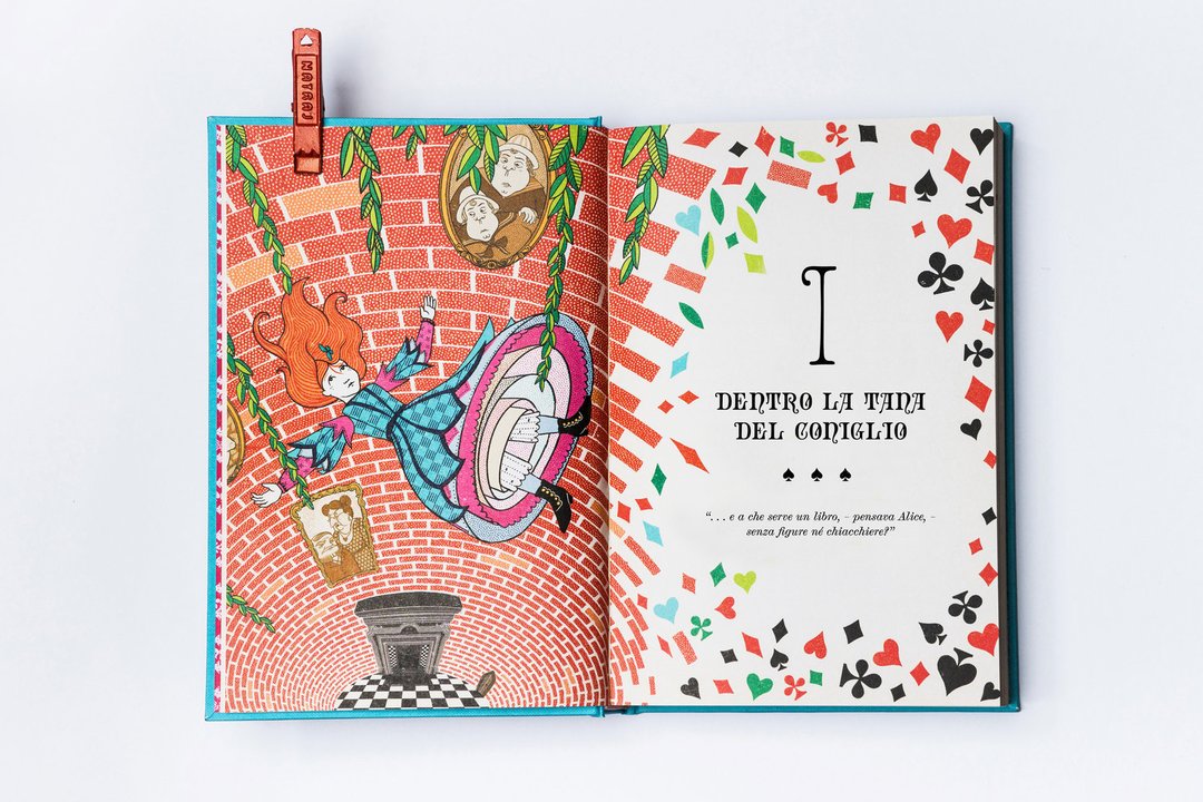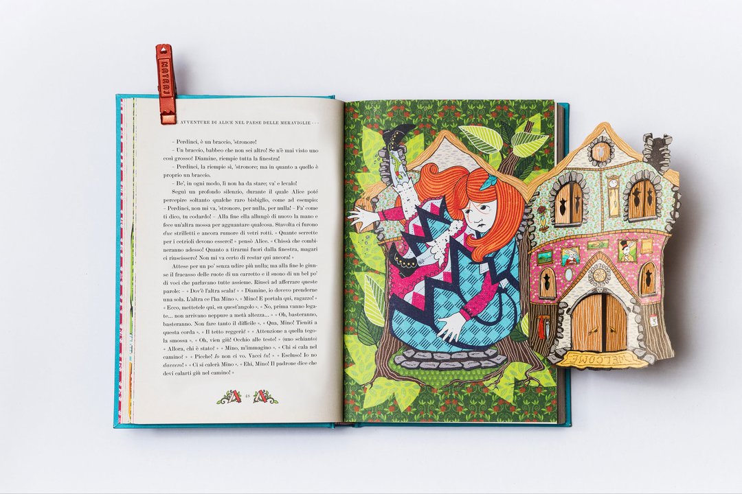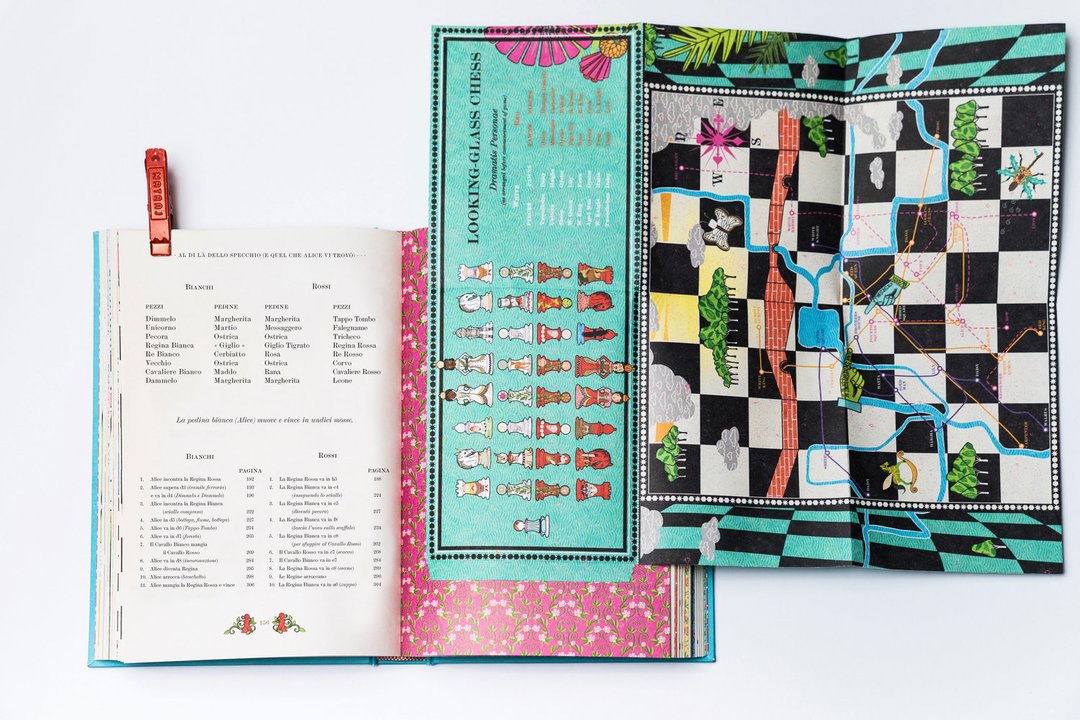 MinaLima Design è stato fondato da Miraphora Mina e Eduardo Lima, noti per la loro decennale partecipazione ai film della saga di Harry Potter, di cui hanno plasmato l’identità grafica. Dal loro studio londinese hanno continuato a raccontare storie attraverso progetti grafici dedicati all’editoria o a film come Sweeney Todd, The Imitation Game e Animali fantastici. Da poco, i due hanno ideato una collana di grande pregio, volta a rivisitare i classici della letteratura per ragazzi con l’inserzione di elementi interattivi strabilianti. Pubblicati nel 1865, gli splendidi Alice nel paese delle meraviglie e Attraverso lo specchio di Lewis Carroll sono diventati dei classici adorati da una generazione dopo l’altra. La storia di Alice, una ragazzina curiosa che attraverso la tana del coniglio arriva in un mondo bizzarro, ha conquistato i cuori dei lettori di tutte le età. Tra le tante feature interattive, il giovane lettore scoprirà un’Alice con braccia e gambe allungabili, la casa del coniglio che si apre per rivelare un’Alice gigante, lo Stregatto con una linguetta per togliere il gatto e lasciare solo il suo ghigno, una mazza da croquet a forma di fenicottero che si muove per colpire il riccio, nonché una mappa del mondo oltre lo specchio…