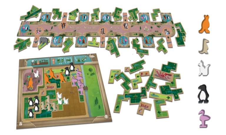 New York Zoo è un gioco semplice e immediato. Due sole azioni possibili per turno: piazzate una nuova tessera Recinto nella vostra area di costruzione, oppure ottenete nuovi animali dalla riserva per riempire i vostri Recinti.