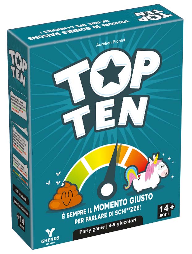 Si sceglie un tema che indica una intensità particolare delle risposte (es. dalla più utile alla meno utile, dalla peggiore alla migliore,…). I giocatori dovranno dare risposte con intensità in base al numero della carta che hanno in mano (dalla numero 1 alla numero 10). Il Capitan Ten dovrà indovinare l’ordine delle risposte. Riuscirete a superare il quinto turno, senza aver accumulato tutti i gettoni… cacca?
