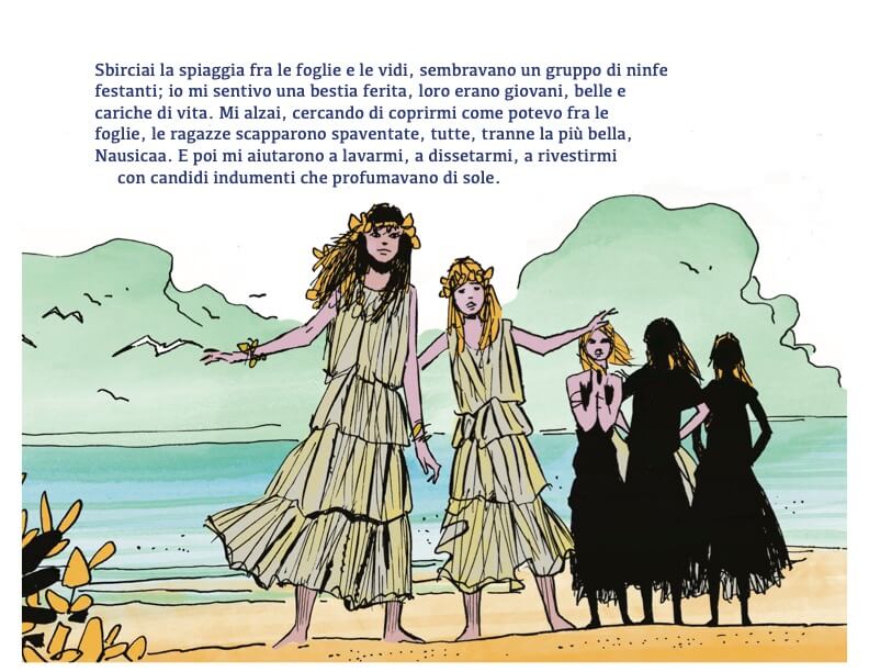Era il 1963, quando Hugo Pratt, da pochi mesi rientrato in Italia dopo l’esperienza Argentina, realizzò le tavole dell’Odissea a per il Corriere dei Piccoli (con il quale aveva già collaborato disegnando, tra le altre, le avventure di Billy James e di Simbad sui testi di Mino Milani ). I testi erano di Franca Ongaro, sorella di Alberto Ongaro e moglie di Franca Basaglia, e descrivevano le immagini di Pratt chiuse nella gabbia grafica tipica dei fumetti anni ’60, il cui spirito innovativo risiedeva nel riportare i grandi classici ad una versione accessibile e comprensibile alle nuove generazioni.